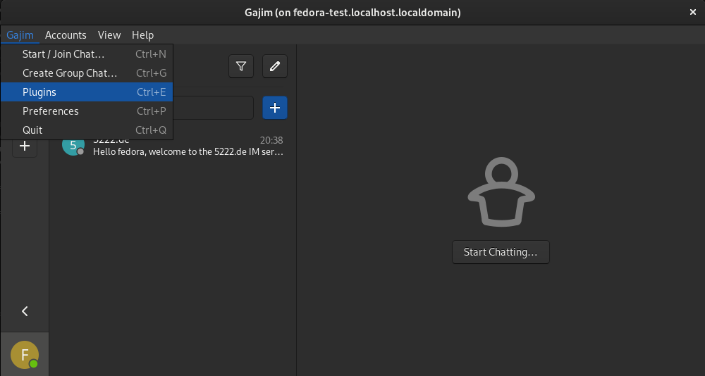 On the Gajim tab click Plugins or press Ctrl+E to open Plugins: